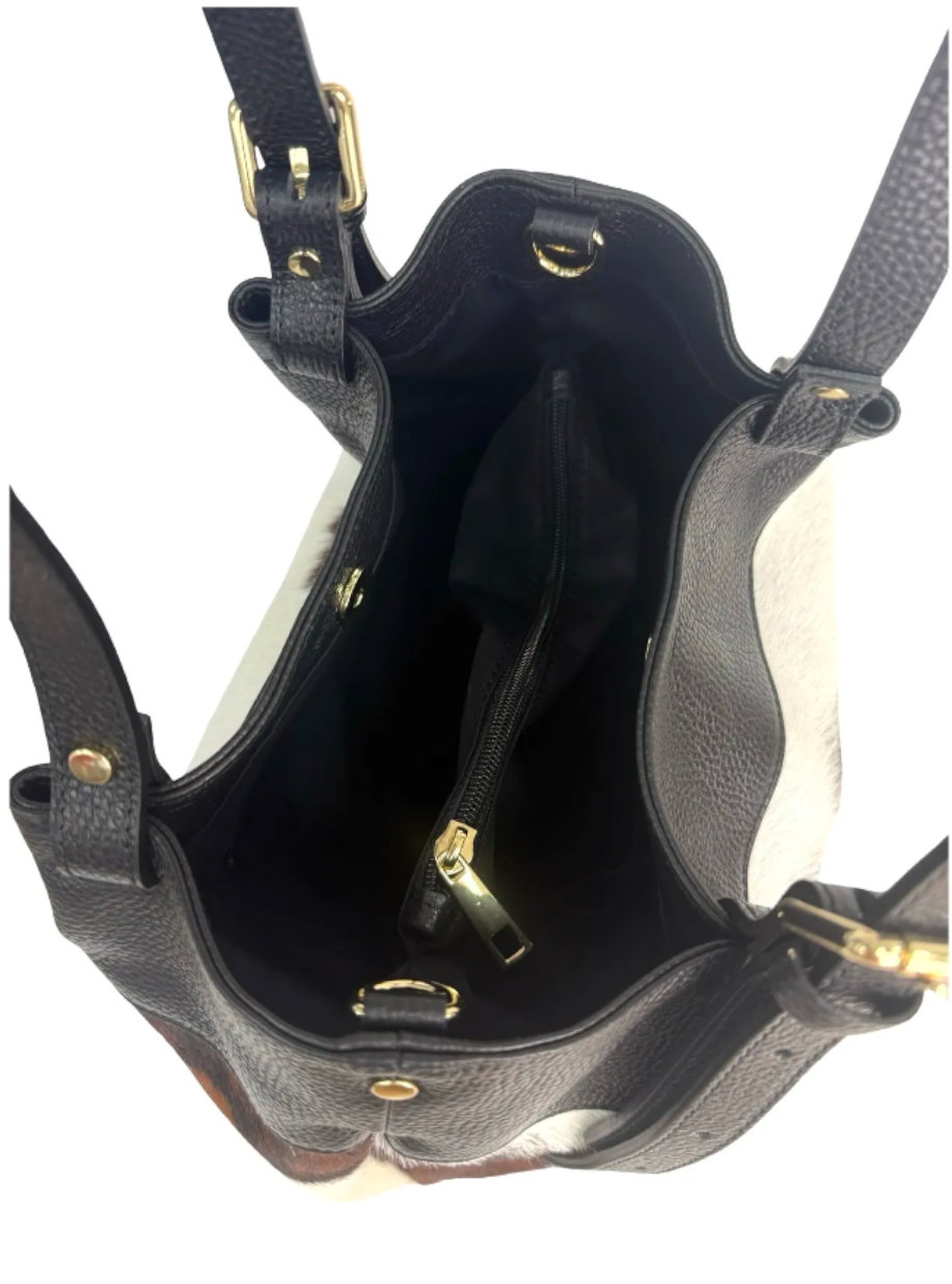 Questa borsa unisce la morbidezza della pelle premium alla texture ricercata del cavallino, creando un contrasto sofisticato che cattura lo sguardo senza mai essere eccessivo. Le linee sono pulite, essenziali, pensate per una donna che ama distinguersi con classe, mentre la struttura solida mantiene la forma perfetta in ogni occasione.
